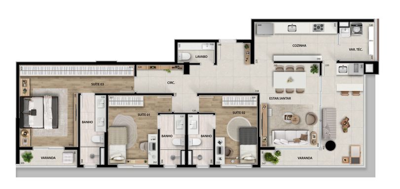 O imóvel conta com dois quartos, ambos suítes, que garantem privacidade e comodidade aos moradores. Os três banheiros, incluindo as suítes e um lavabo, são um diferencial para atender às necessidades do dia a dia com conforto. A varanda gourmet é um espaço perfeito para momentos de descontração, seja para uma refeição ao ar livre ou para receber amigos e familiares em um ambiente elegante e funcional. Cada detalhe deste apartamento foi pensado para oferecer uma experiência de moradia acolhedora e sofisticada.