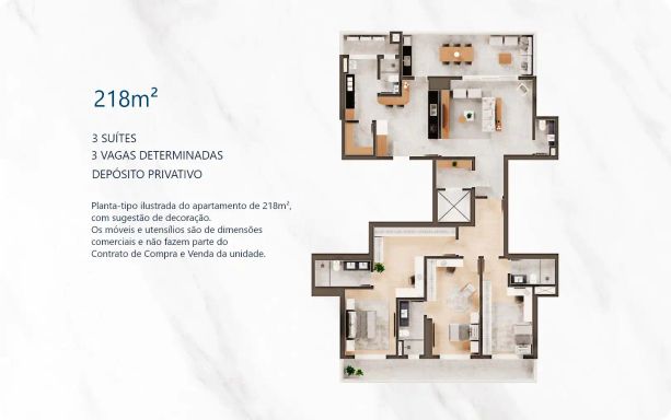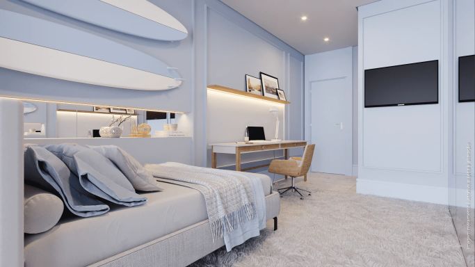 Inclui banheiros, lavabos, suítes e demi-suítes